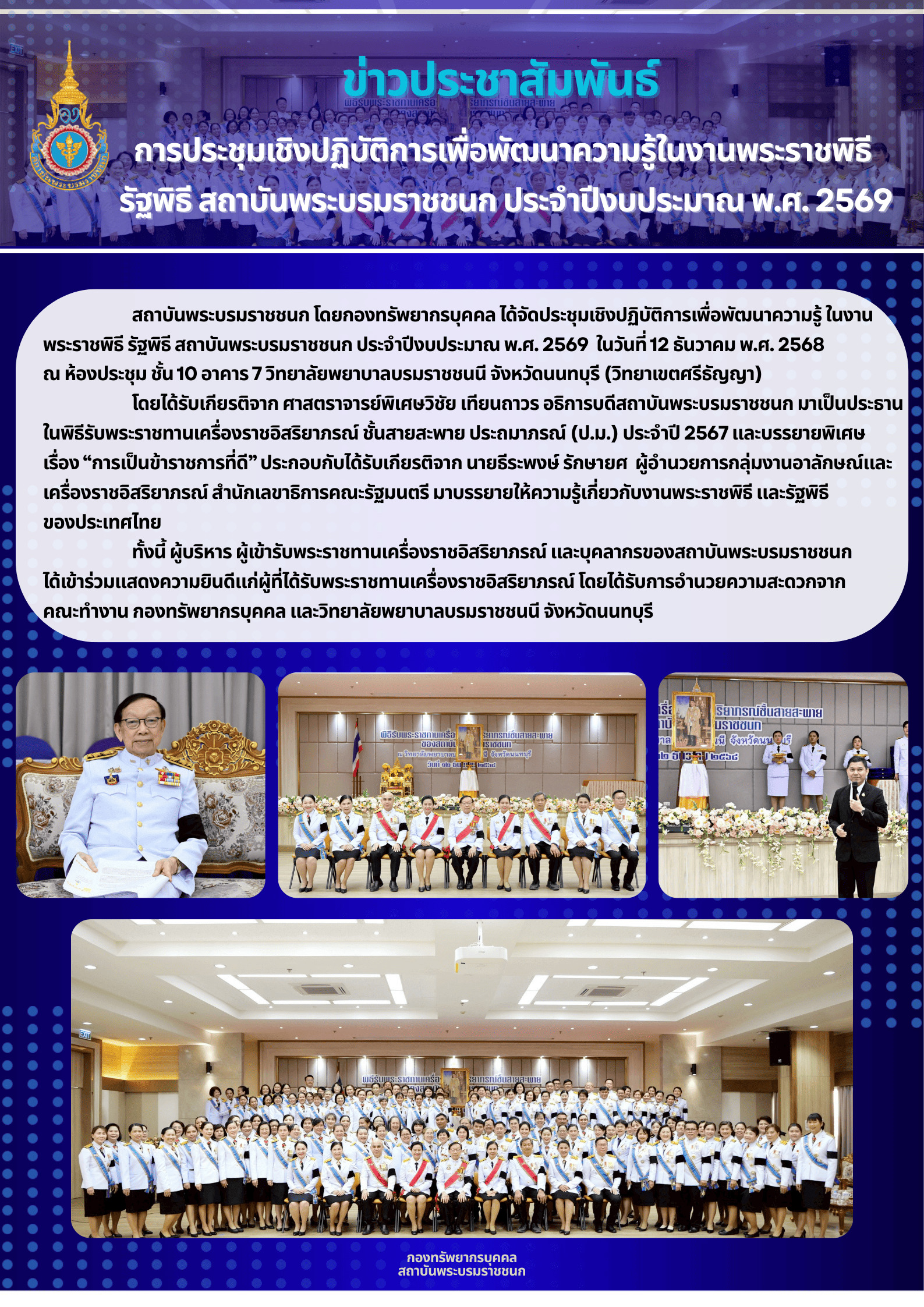 การประชุมเชิงปฏิบัติการเพื่อพัฒนาความรู้ในงานพระราชพิธี รัฐพิธี สถาบันพระบรมราชชนก ประจำปิ้งประมาณ พ.ศ.ศ. 2569