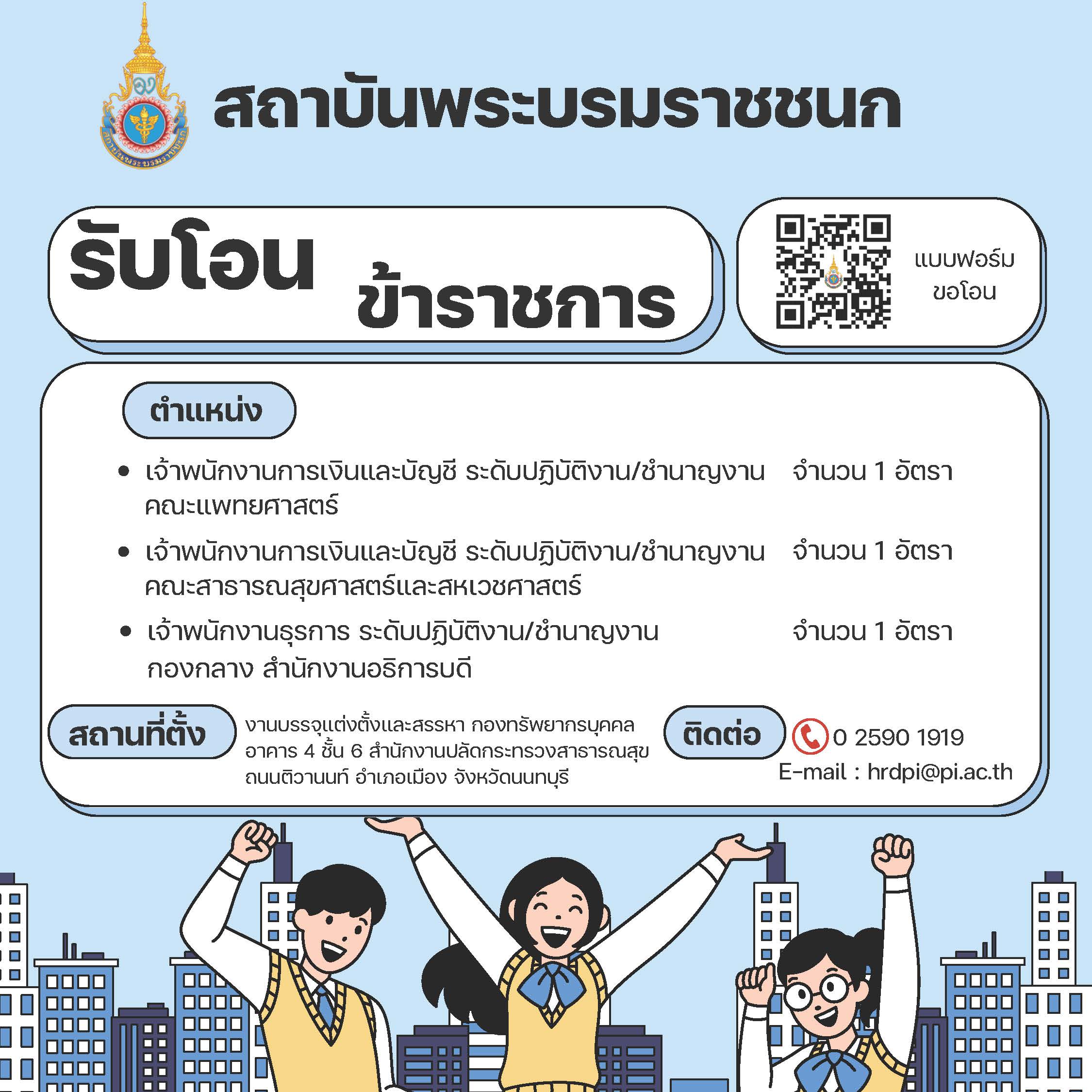 สถาบันพระบรมราชชนก มีความประสงค์จะรับโอนข้าราชการ จำนวน 3 อัตรา