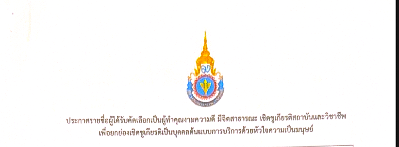 ประกาศรายชื่อผู้ได้รับคัดเลือกเป็นผู้ทำคุณงามความดี มีจิตสาธารณะ เชิดชูเกียรติสถาบันและวิชาชีพเพื่อยกย่องเชิดชูเกียรติเป็นบุคคลต้นแบบการบริการด้วยหัวใจความเป็นมนุษย์